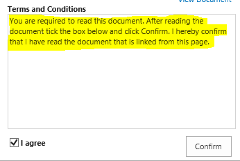 If you were to update the terms as above, it will amend the text viewed by the user here: